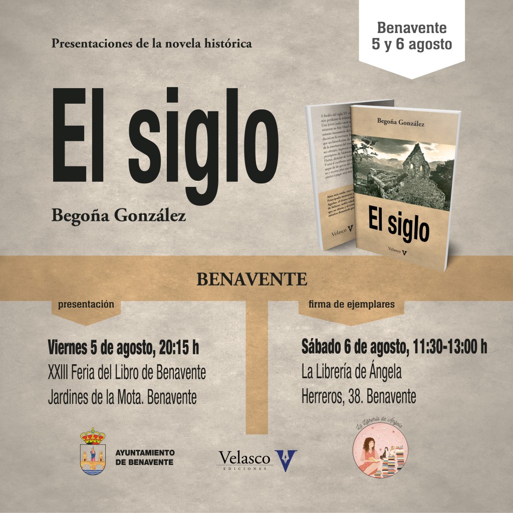 Además, el viernes 5 (20:15 h) Begoña González presentará la novela histórica El siglo en los Jardines de la Mota. Al día siguiente (sabado 6), y fuera ya de la actividad de la feria, la misma autora firmará ejemplares en La Librería de Ángela (Herreros 38, Benavente) entre las 11:30 y las 13:00 h.