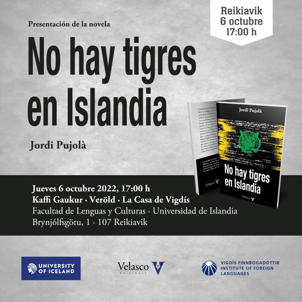 El jueves 6 de octubre, el escritor barcelonés Jordi Pujolà presentará en Reikiavik su novela No hay tigres en Islandia (Velasco Ediciones).