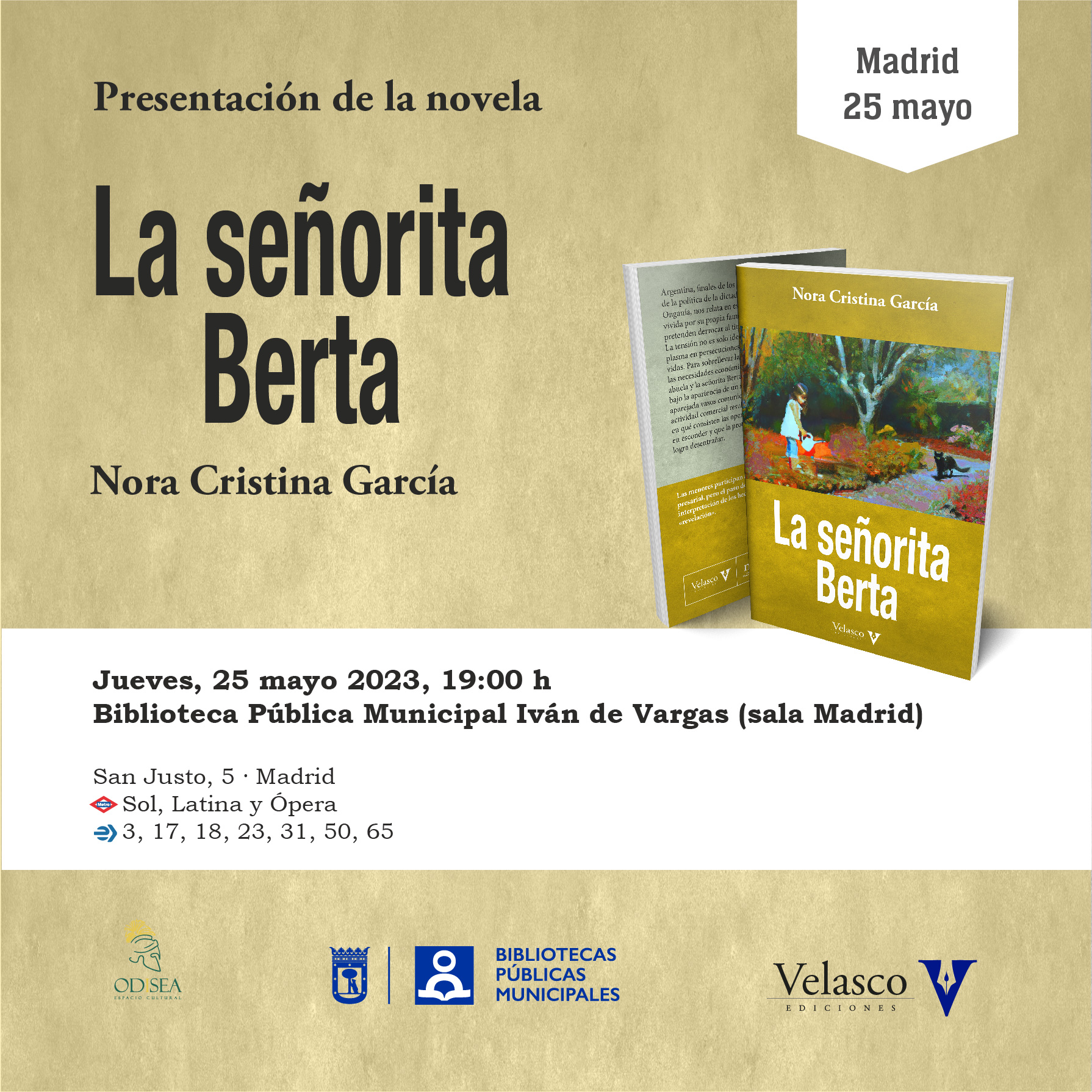 La escritora argentina Nora Cristina Garcia llegó el lunes a Madrid, donde este jueves 25 de mayo, siete de la tarde, presentará su reciente novela La señorita Berta.
