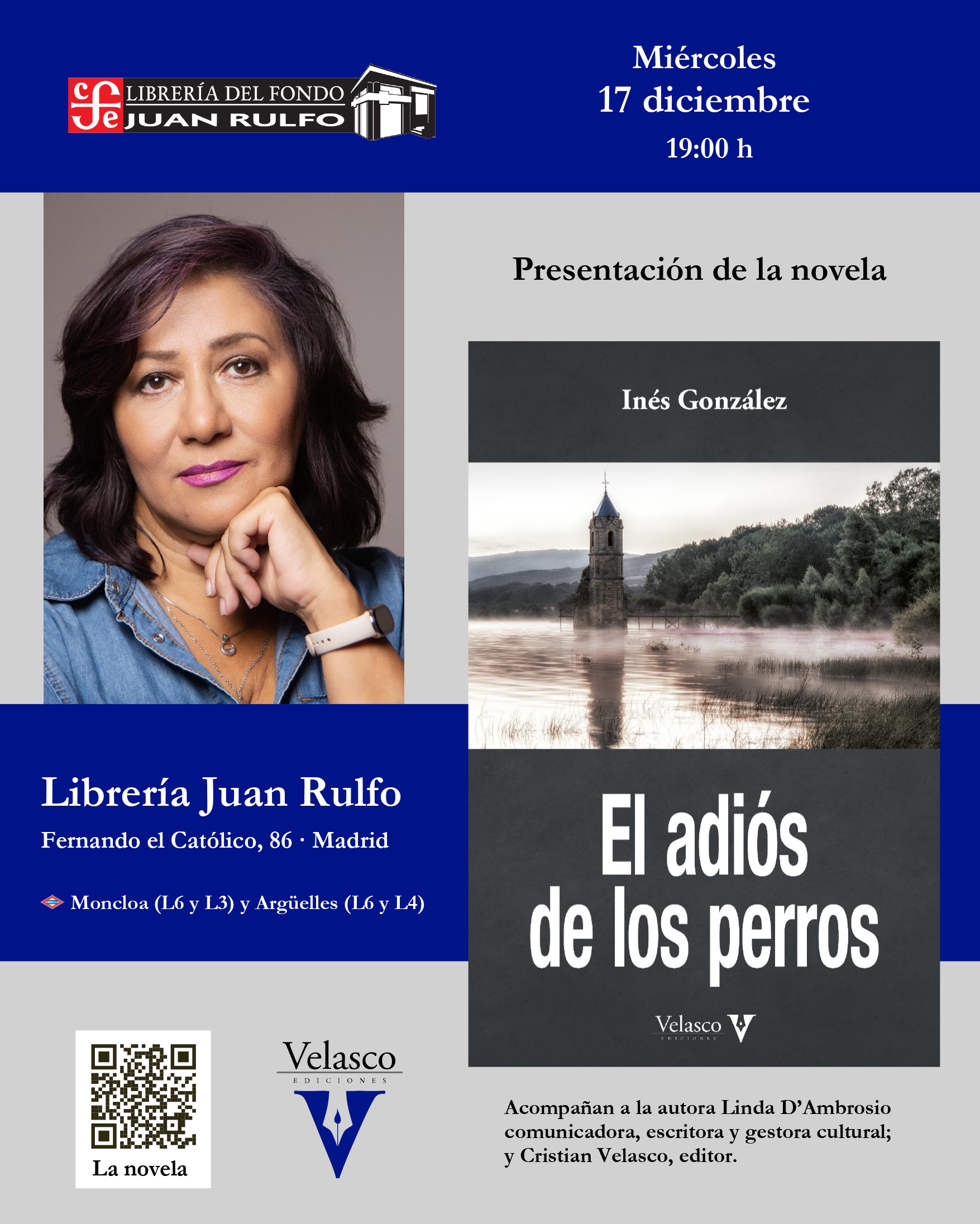 El acto tendrá lugar en la librería Juan Rulfo (Fernando el Católico, 86) el miércoles 17 de diciembre a las siete de la tarde. La autora estará acompañada por Linda D’Ambrosio, comunicadora, escritora y gestora cultural; y por Cristian Velasco, editor de esta casa.